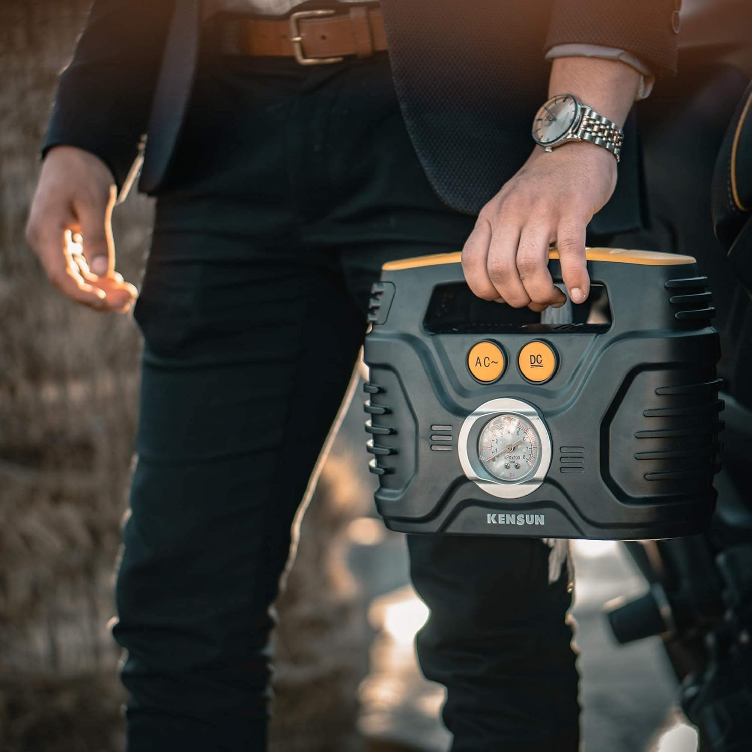 - AC/DC for car and home: Kensun’s unique AC/DC switching with 12V car cigarette light plug as well as 110V wall plug for home outlet makes this inflator more useful since you can use it anywhere.