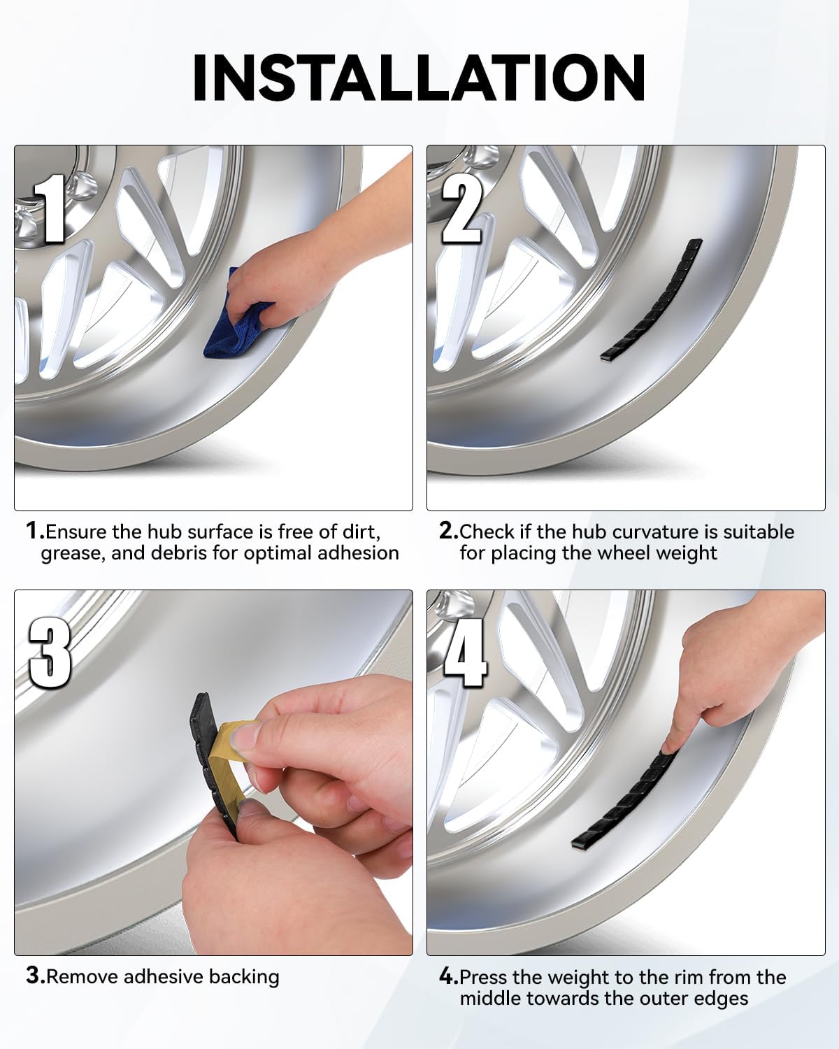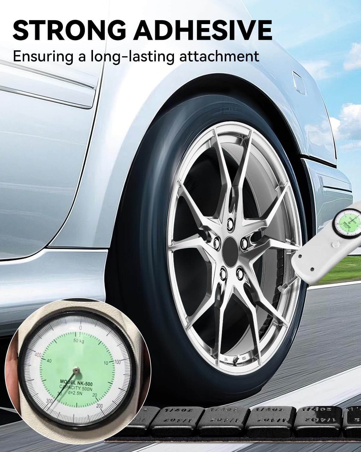- Peel Off in 1 Second: Features a 2mm extended design, easy to peel backing makes adhering the weight to the tire simple and efficient, and it is flexible enough to fit any wheel shape and size