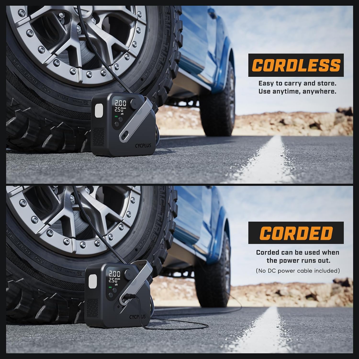 CYCPLUS AL7 Tire Inflator Portable Air Compressor for Trucks & Pickups – 4X Faster High-Powered Tire Inflator, Portable Design for Heavy-duty Vehicle & Inflatables, Dual-Use Type