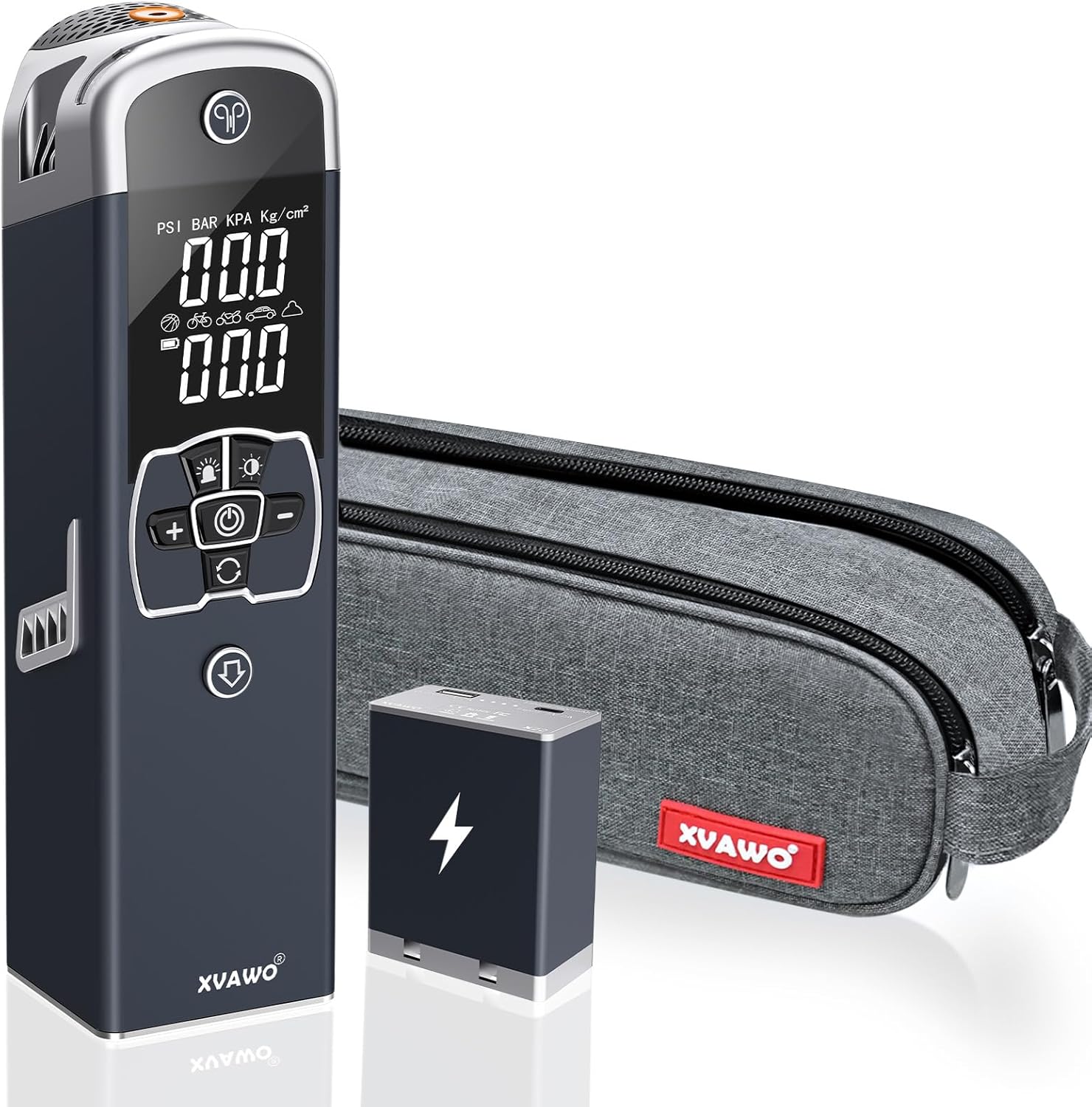 - DETACHABLE & ENDURING POWER -The compact bike pump comes with a 7800mAh removable battery,It can be easily separated from the portable air pump and used as a backup power supply for your smartphones.Recharging it at home or in your car using a cigarette lighter or USB cable,making it an ideal companion for outdoor adventures or emergency power needs.
