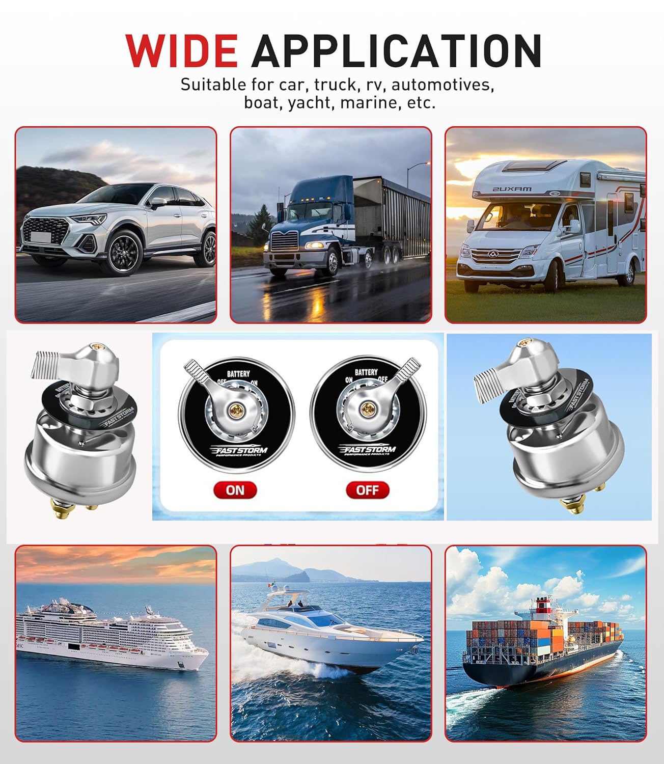 - ăBuy with confidenceă This battery disconnect switch comes complete with a 1-Year warranty. If the shut-off switch ever fails on your ATVs, Trailers, Off-road, RVs, Trucks, Heavy Vehicle, UTV, Boats, Cars during this period, please feel free to contact us for a replacement. Save time and money by purchasing this part, replacing them by yourself within minutes.