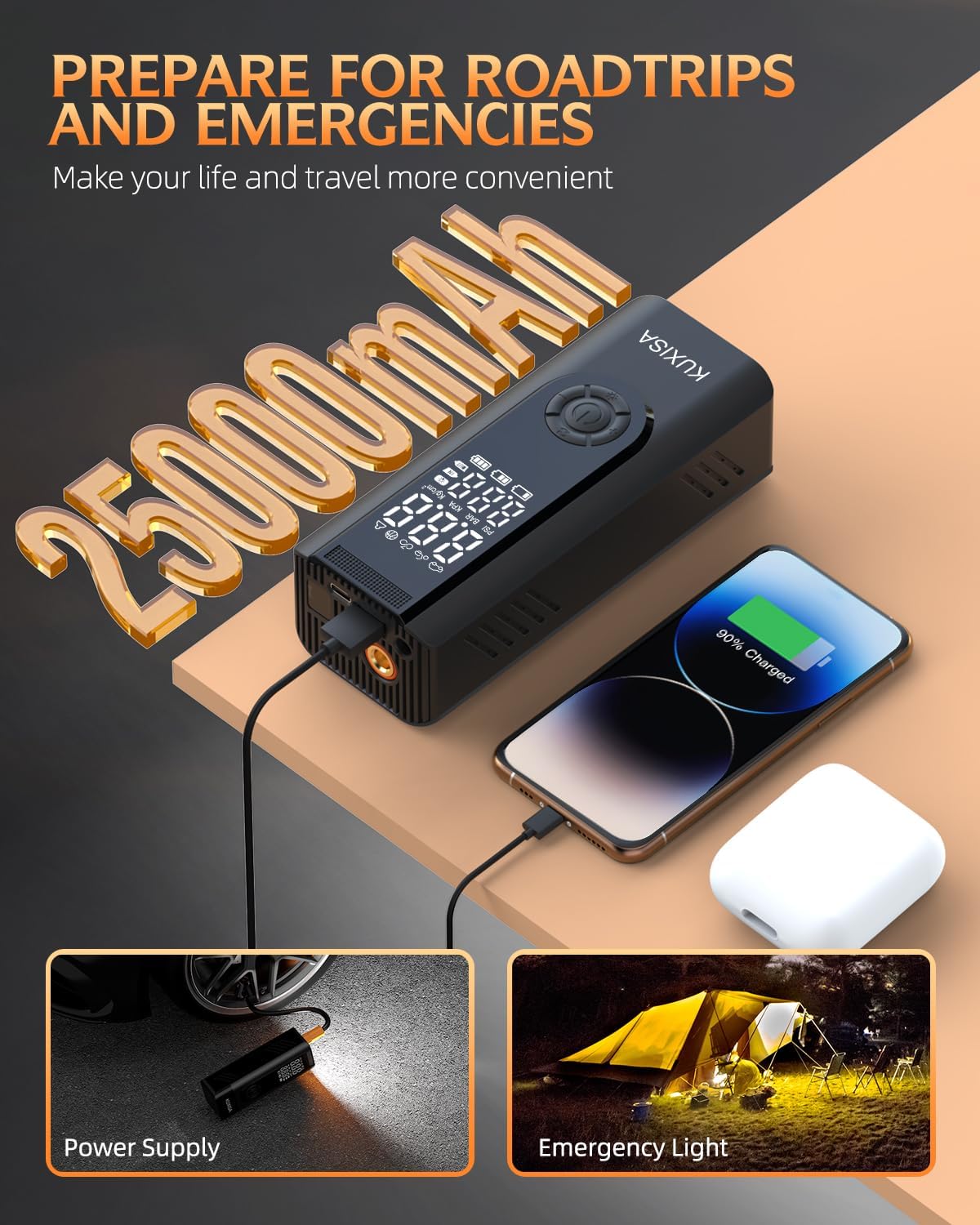 Tire Inflator Portable Air Compressor,180PSI & 3X Faster Air Pump for Car Tires with Digital Pressure Gauge, 25000mAh Air Compressor for Car, Motorcycle, Bicycle, Ball and More.