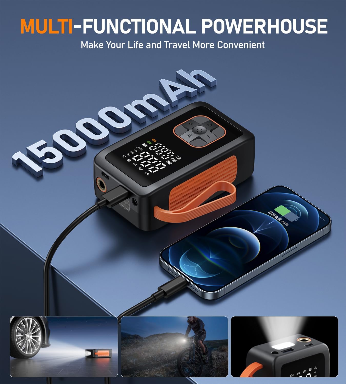 - 【Fast and Safe Inflation】Equipped with an intelligent sensing system, when the tire pressure reaches the preset value, it automatically stops inflating. The safety factor is maximized! The inflation rate soars to 36L/min, three times faster than normal tire inflator portable air compressors, allowing you to complete inflation in a short time