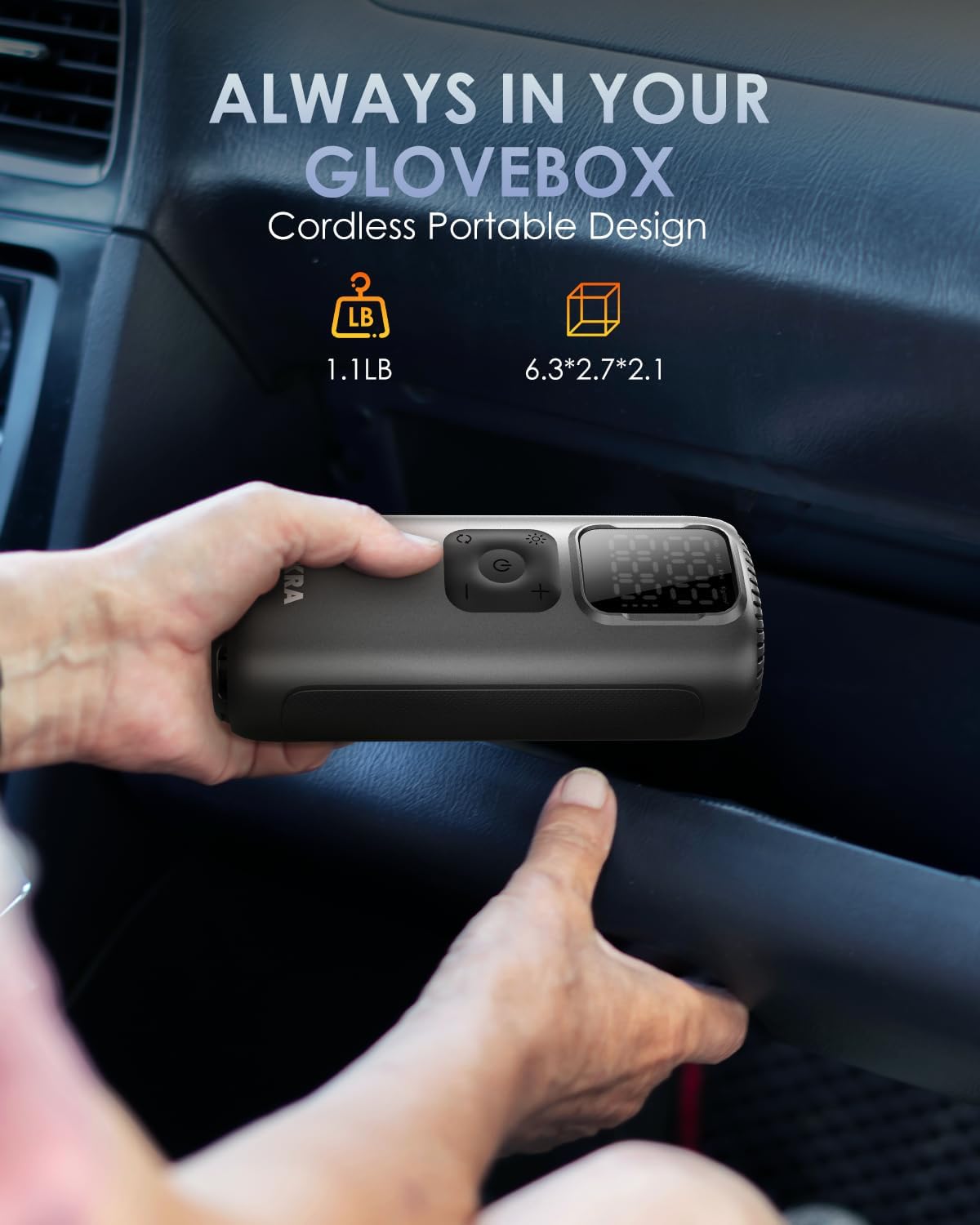 - [Efficient and Fast Inflation]: T22 high-capacity rechargeable tire inflator, powerful performance with large rechargeable battery maintain continuous output, ensures steady airflow, increasing inflation speed by 40%. 3× faster inflating, refill 205/65 R16 car tire to 30-36PSI in just 54S. 160PSI high-pressure inflation for all kinds of cars, motorcycles, bikes, balls and more. With this portable tire inflator, no more looking for gas station or auto shop while your tire is flat
