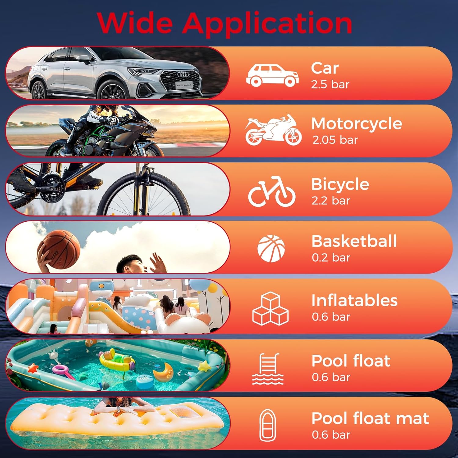 - Smart Global Modes: Five presets (car/motorcycle/bike/ball/custom) auto-adjust pressure. One-touch unit switching (PSI/Bar/kPa/kg/cmΒ²) provides worldwide compatibility.NOTE: please read the User Manual carefully before use.